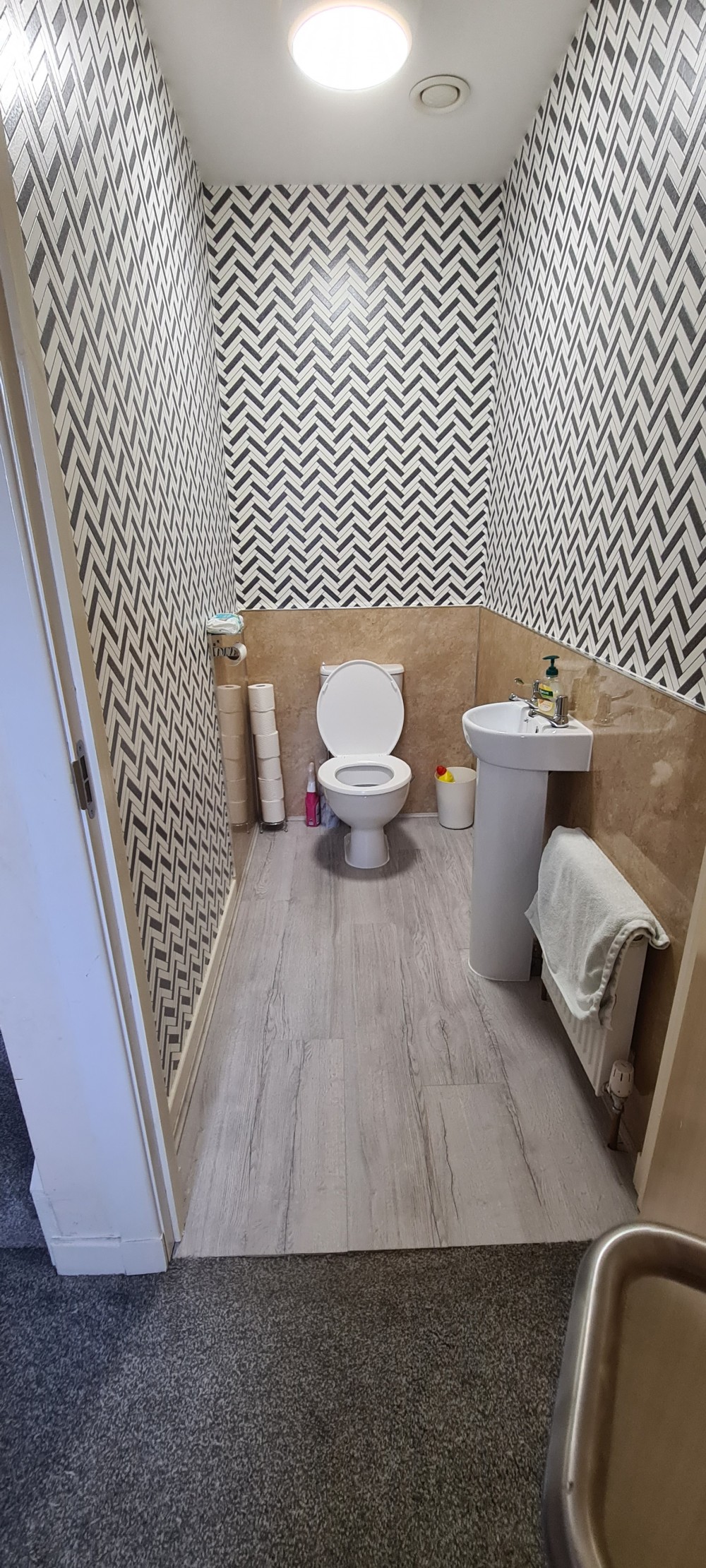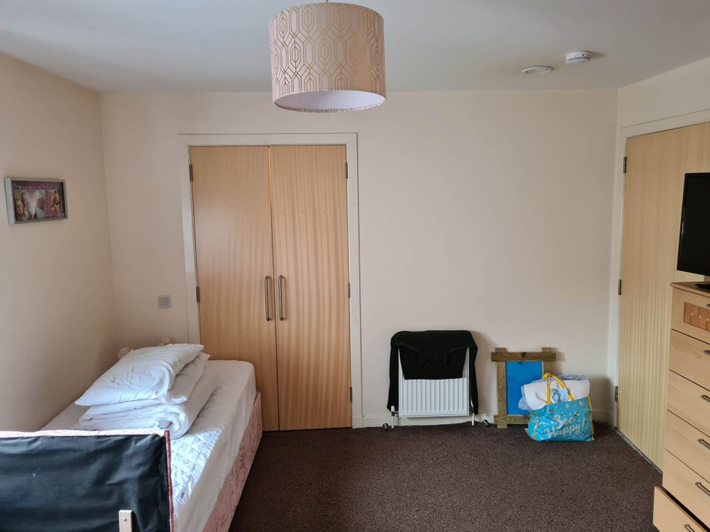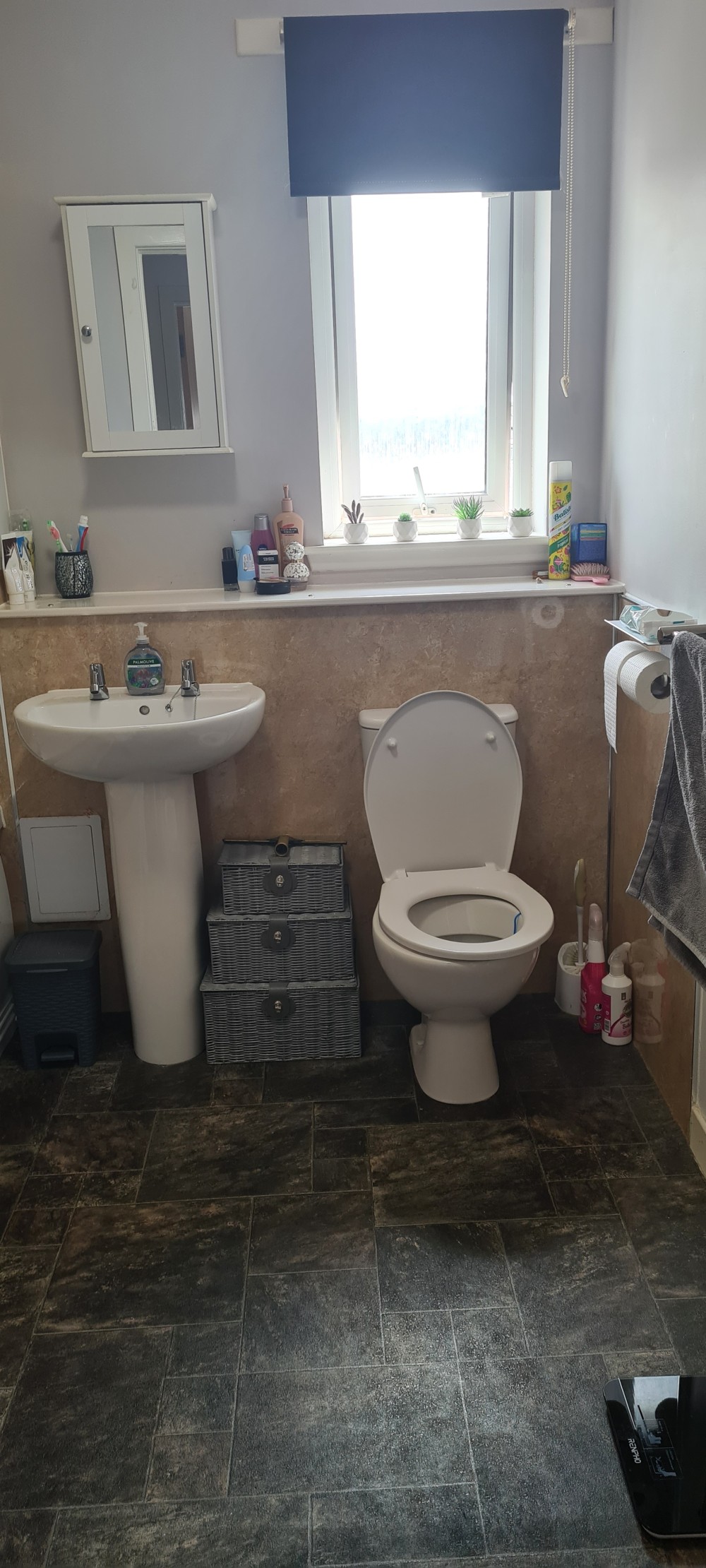 *6 year old house* Bedroom 1: very big with 2 built in wardrobes- 1 of them walk in, Bedroom 2: good size with 1 built in wardrobe, bathroom upstairs and downstairs toilet with sink. Very large kitchen with big storage cupboard and big private back garden all fenced off. Parking outside livingroom window.