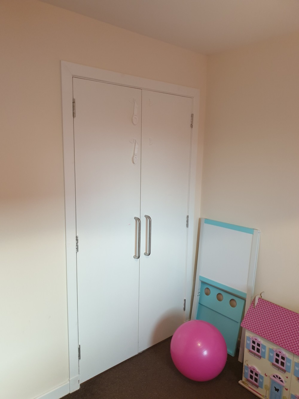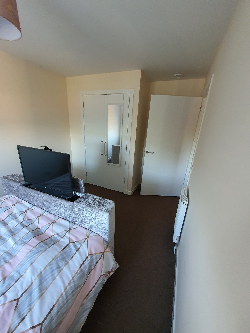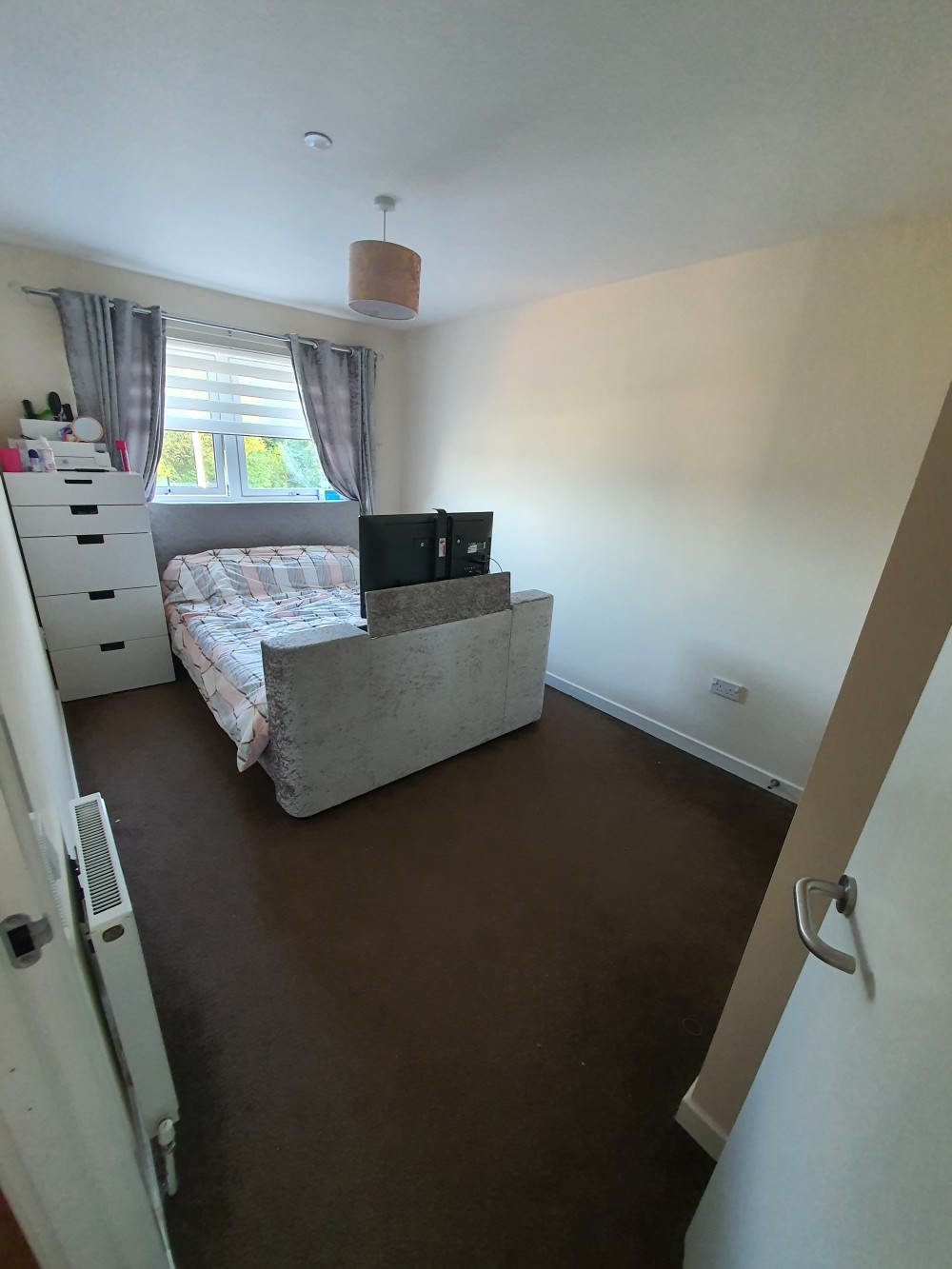 Recently been decorated will fit upto a small double bed in it. No Built in cupboard space.