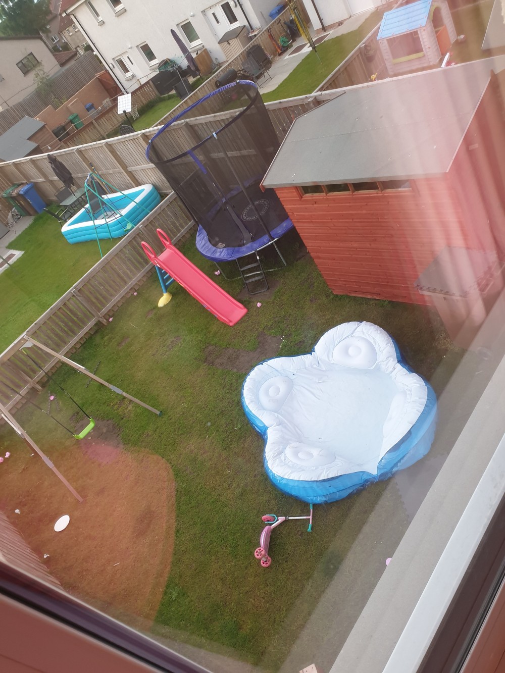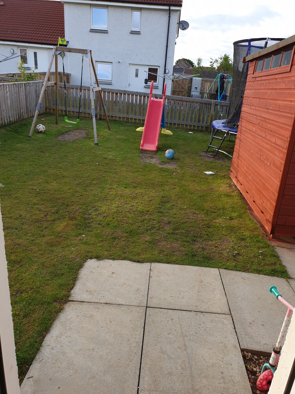 Medium size backgarden which i currently have a 6ft x 8ft shed and a large trampoline and a slide and a swing and still plenty more room. Under my shed is also slabbed. An outside tap is also fitted. Fence right around the garden and high gate with a lock.