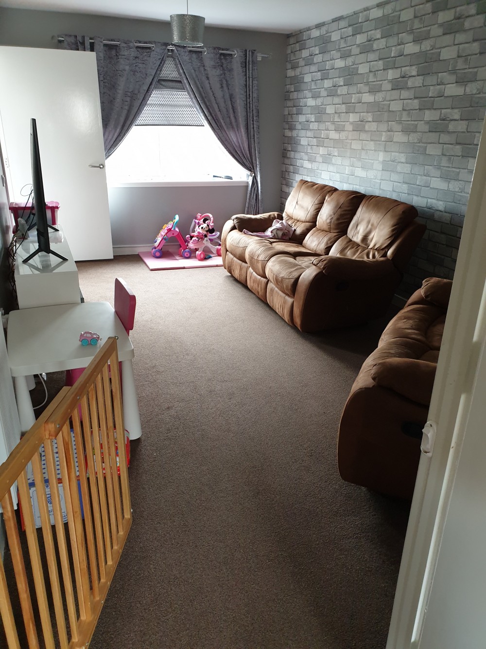 Large livingroom. Just been decorated this year. With triple glazing and thick insulation and sprinkler fitted and air conditioning.