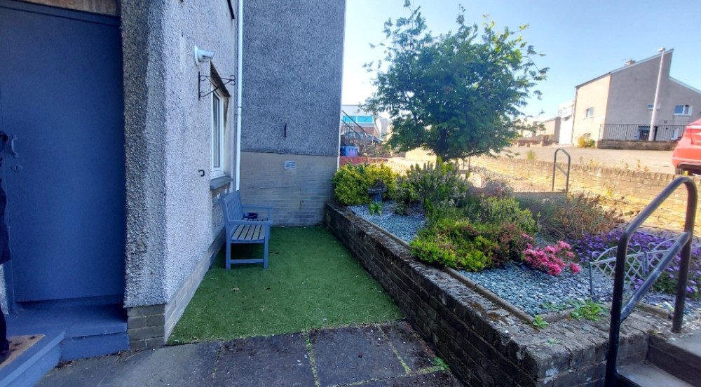 â—‹ In front of the property is a small, slabbed garden complete with a bench, and a good-sized flowerbed.